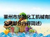 大家好,今天小方来说说一篇关于莱州市华冠化工机械有限公司,关于莱州市华冠化工机械有限公司部分内容简述的文章,那么现在就为大家来简单 浏览全文>>