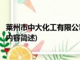 大家好,今天小方来说说一篇关于莱州市中大化工有限公司,关于莱州市中大化工有限公司部分内容简述的文章,那么现在就为大家来简单介绍下, 浏览全文>>