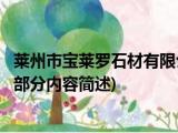 大家好,今天小方来说说一篇关于莱州市宝莱罗石材有限公司,关于莱州市宝莱罗石材有限公司部分内容简述的文章,那么现在就为大家来简单介绍 浏览全文>>