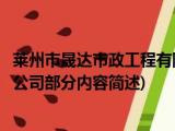大家好,今天小方来说说一篇关于莱州市晟达市政工程有限公司,关于莱州市晟达市政工程有限公司部分内容简述的文章,那么现在就为大家来简单 浏览全文>>