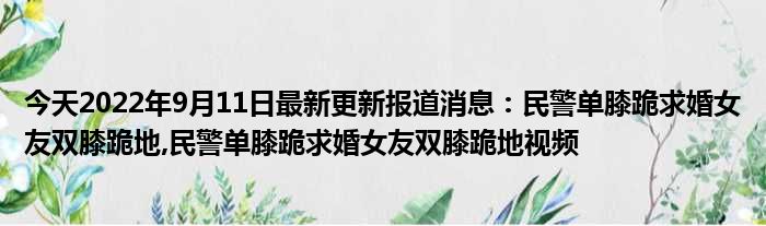今天2022年9月11日最新更新报道消息:民警单膝跪求婚女友双膝跪地,民警单膝跪求婚女友双膝跪地视频