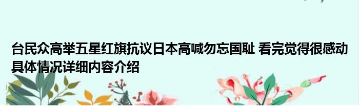 想必大家现在对于台民众高举五星红旗抗议日本高喊勿忘国耻 看完觉得很感动方面的消息都是比较想了解的吧,那么针对于台民众高举五星红旗