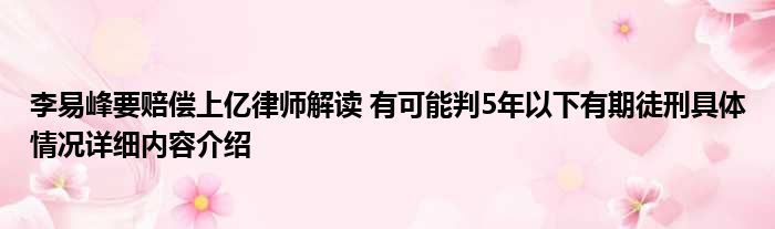 想必大家现在对于李易峰要赔偿上亿律师解读 有可能判5年以下有期徒刑方面的消息都是比较想了解的吧,那么针对于李易峰要赔偿上亿律师解