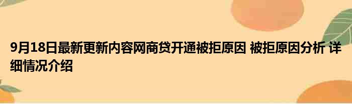9月18日最新更新内容网商贷开通被拒原因 被拒原因分析 详细情况介绍
