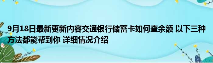 9月18日最新更新内容交通银行储蓄卡如何查余额 以下三种方法都能帮到你 详细情况介绍