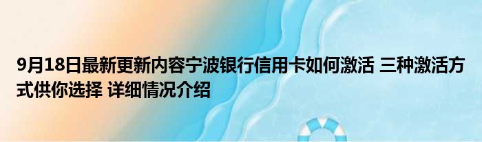 9月18日最新更新内容宁波银行信用卡如何激活 三种激活方式供你选择 详细情况介绍