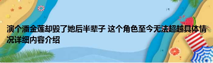 想必大家现在对于演个潘金莲却毁了她后半辈子 这个角色至今无法超越方面的消息都是比较想了解的吧,那么针对于演个潘金莲却毁了她后半辈