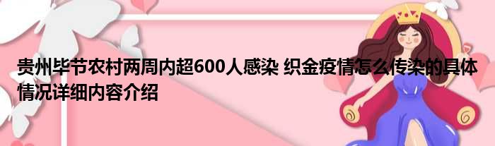 想必大家现在对于贵州毕节农村两周内超600人感染 织金疫情怎么传染的方面的消息都是比较想了解的吧,那么针对于贵州毕节农村两周内超600