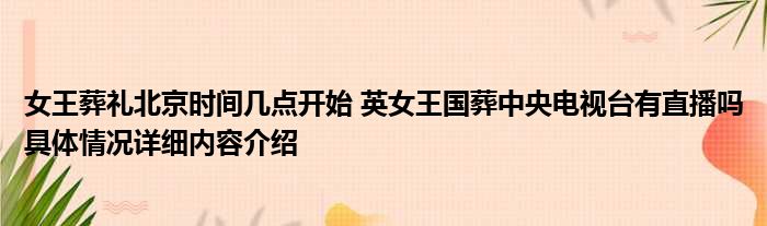 想必大家现在对于女王葬礼北京时间几点开始 英女王国葬中央电视台有直播吗方面的消息都是比较想了解的吧,那么针对于女王葬礼北京时间几