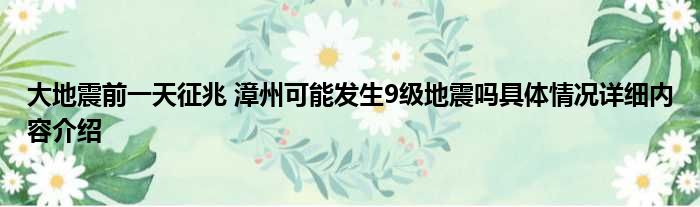 大地震前一天征兆 漳州可能发生9级地震吗具体情况详细内容介绍