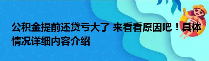 公积金提前还贷亏大了 来看看原因吧!具体情况详细内容介绍