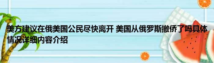美方建议在俄美国公民尽快离开 美国从俄罗斯撤侨了吗具体情况详细内容介绍