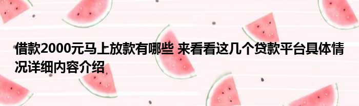 借款2000元马上放款有哪些 来看看这几个贷款平台具体情况详细内容介绍