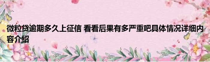 微粒贷逾期多久上征信 看看后果有多严重吧具体情况详细内容介绍