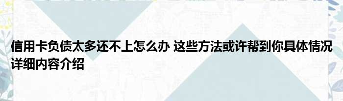 想必大家现在对于信用卡负债太多还不上怎么办 这些方法或许帮到你方面的消息都是比较想了解的吧,那么针对于信用卡负债太多还不上怎么办