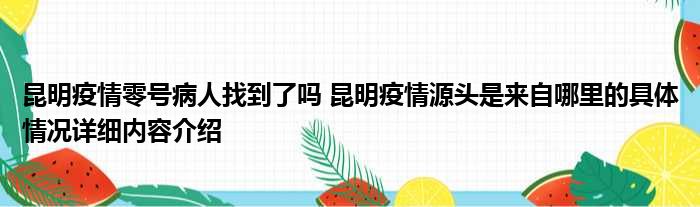 昆明疫情零号病人找到了吗 昆明疫情源头是来自哪里的具体情况详细内容介绍