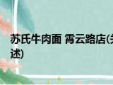 大家好,今天小方来说说一篇关于苏氏牛肉面 霄云路店,关于苏氏牛肉面 霄云路店部分内容简述的文章,那么现在就为大家来简单介绍下,希望 浏览全文>>