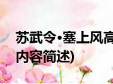 大家好,今天小方来说说一篇关于苏武令·塞上风高,关于苏武令·塞上风高部分内容简述的文章,那么现在就为大家来简单介绍下,希望对各位小 浏览全文>>