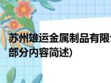 大家好,今天小方来说说一篇关于苏州雄运金属制品有限公司,关于苏州雄运金属制品有限公司部分内容简述的文章,那么现在就为大家来简单介绍 浏览全文>>
