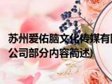 大家好,今天小方来说说一篇关于苏州爱佑脑文化传媒有限公司,关于苏州爱佑脑文化传媒有限公司部分内容简述的文章,那么现在就为大家来简单 浏览全文>>
