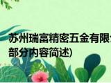 大家好,今天小方来说说一篇关于苏州瑞富精密五金有限公司,关于苏州瑞富精密五金有限公司部分内容简述的文章,那么现在就为大家来简单介绍 浏览全文>>