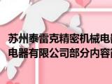 大家好,今天小方来说说一篇关于苏州泰雷克精密机械电器有限公司,关于苏州泰雷克精密机械电器有限公司部分内容简述的文章,那么现在就为大 浏览全文>>