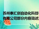 大家好,今天小方来说说一篇关于苏州泰汇创自动化科技有限公司,关于苏州泰汇创自动化科技有限公司部分内容简述的文章,那么现在就为大家来 浏览全文>>
