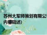 大家好,今天小方来说说一篇关于苏州大军师策划有限公司,关于苏州大军师策划有限公司部分内容简述的文章,那么现在就为大家来简单介绍下, 浏览全文>>