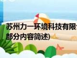 大家好,今天小方来说说一篇关于苏州力一环境科技有限公司,关于苏州力一环境科技有限公司部分内容简述的文章,那么现在就为大家来简单介绍 浏览全文>>