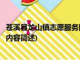 大家好,今天小方来说说一篇关于苍溪县龙山镇志愿服务队,关于苍溪县龙山镇志愿服务队部分内容简述的文章,那么现在就为大家来简单介绍下, 浏览全文>>