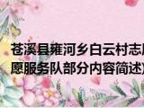大家好,今天小方来说说一篇关于苍溪县雍河乡白云村志愿服务队,关于苍溪县雍河乡白云村志愿服务队部分内容简述的文章,那么现在就为大家来 浏览全文>>