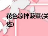 大家好,今天小方来说说一篇关于花色凉拌菠菜,关于花色凉拌菠菜部分内容简述的文章,那么现在就为大家来简单介绍下,希望对各位小伙伴们有 浏览全文>>