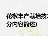 大家好,今天小方来说说一篇关于花椒丰产栽培技术,关于花椒丰产栽培技术部分内容简述的文章,那么现在就为大家来简单介绍下,希望对各位小 浏览全文>>