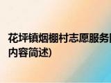 大家好,今天小方来说说一篇关于花坪镇烟棚村志愿服务队,关于花坪镇烟棚村志愿服务队部分内容简述的文章,那么现在就为大家来简单介绍下, 浏览全文>>