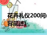 大家好,今天小方来说说一篇关于花卉礼仪200问,关于花卉礼仪200问部分内容简述的文章,那么现在就为大家来简单介绍下,希望对各位小伙伴们 浏览全文>>