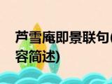 大家好,今天小方来说说一篇关于芦雪庵即景联句,关于芦雪庵即景联句部分内容简述的文章,那么现在就为大家来简单介绍下,希望对各位小伙伴 浏览全文>>