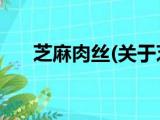 大家好,今天小方来说说一篇关于芝麻肉丝,关于芝麻肉丝部分内容简述的文章,那么现在就为大家来简单介绍下,希望对各位小伙伴们有所帮助。 浏览全文>>