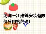 大家好,今天小方来说说一篇关于芜湖三江建筑安装有限公司,关于芜湖三江建筑安装有限公司部分内容简述的文章,那么现在就为大家来简单介绍 浏览全文>>