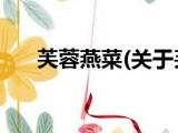 大家好,今天小方来说说一篇关于芙蓉燕菜,关于芙蓉燕菜部分内容简述的文章,那么现在就为大家来简单介绍下,希望对各位小伙伴们有所帮助。 浏览全文>>