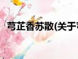 大家好,今天小方来说说一篇关于芎芷香苏散,关于芎芷香苏散部分内容简述的文章,那么现在就为大家来简单介绍下,希望对各位小伙伴们有所帮 浏览全文>>
