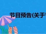 大家好,今天小方来说说一篇关于节目预告,关于节目预告部分内容简述的文章,那么现在就为大家来简单介绍下,希望对各位小伙伴们有所帮助。 浏览全文>>