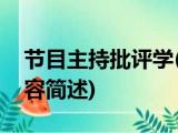 大家好,今天小方来说说一篇关于节目主持批评学,关于节目主持批评学部分内容简述的文章,那么现在就为大家来简单介绍下,希望对各位小伙伴 浏览全文>>
