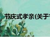 大家好,今天小方来说说一篇关于节庆式孝亲,关于节庆式孝亲部分内容简述的文章,那么现在就为大家来简单介绍下,希望对各位小伙伴们有所帮 浏览全文>>