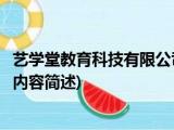 大家好,今天小方来说说一篇关于艺学堂教育科技有限公司,关于艺学堂教育科技有限公司部分内容简述的文章,那么现在就为大家来简单介绍下, 浏览全文>>