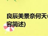大家好,今天小方来说说一篇关于良辰美景奈何天,关于良辰美景奈何天部分内容简述的文章,那么现在就为大家来简单介绍下,希望对各位小伙伴 浏览全文>>