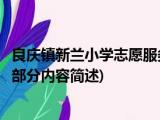 大家好,今天小方来说说一篇关于良庆镇新兰小学志愿服务队,关于良庆镇新兰小学志愿服务队部分内容简述的文章,那么现在就为大家来简单介绍 浏览全文>>