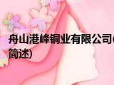大家好,今天小方来说说一篇关于舟山港峰铜业有限公司,关于舟山港峰铜业有限公司部分内容简述的文章,那么现在就为大家来简单介绍下,希望 浏览全文>>