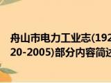 大家好,今天小方来说说一篇关于舟山市电力工业志,1920-2005,关于舟山市电力工业志,1920-2005部分内容简述的文章,那么现在就为大家来简 浏览全文>>