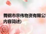 大家好,今天小方来说说一篇关于舞钢市宗伟物资有限公司,关于舞钢市宗伟物资有限公司部分内容简述的文章,那么现在就为大家来简单介绍下, 浏览全文>>