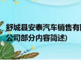 大家好,今天小方来说说一篇关于舒城县安泰汽车销售有限公司,关于舒城县安泰汽车销售有限公司部分内容简述的文章,那么现在就为大家来简单 浏览全文>>